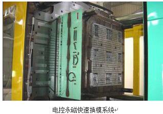 電控永磁快速換模系統(tǒng)主要是針對傳統(tǒng)注塑機、沖床、合模機裝夾模具時間長,操作復(fù)雜,安全性低而設(shè)計的,該系統(tǒng)采用電控永磁模板及動模板,只需經(jīng)過簡單的充退磁動作,就能裝夾和更換模具,真正做到3分鐘換模,它既可以安裝到新機中,作為標(biāo)準(zhǔn)配置銷售給終客戶,也可以對正在使用機臺進行改造,使傳統(tǒng)機臺具有3分鐘快速換模功能而不會改變原來機臺的結(jié)構(gòu),即實用又方便。那么