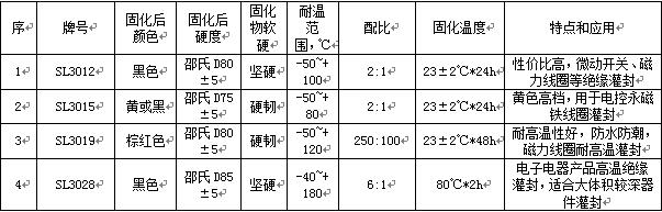 世林的微動開關(guān)用灌封膠,有這么幾種產(chǎn)品,主要是在耐溫等級有區(qū)別,當(dāng)然灌封膠的顏色,配比這些都可以做一些參考,包括施膠后的固化工藝要求。具體見下表: