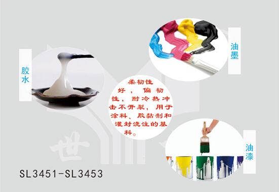 世林膠業(yè)SL3453 系列聚氨酯改性環(huán)氧樹脂;產(chǎn)品規(guī)格為10KG塑料桶包裝,不含溶劑,粘度較低,操作方便,貯存穩(wěn)定性好,且固化后具有很好的韌性,改善了以往環(huán)氧樹脂缺乏韌性,易脆的性質(zhì)?梢院腿魏伟奉惖裙袒瘎┡浜鲜褂。在膠粘劑、涂料和復(fù)合材料領(lǐng)域?qū)⒕哂袕V泛的應(yīng)用前景。目前該產(chǎn)品已在膠粘劑和涂料領(lǐng)域有了良好的應(yīng)用效果。