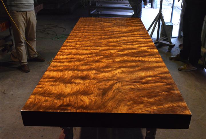 實(shí)木大板,是近幾年漸趨流行的一種商業(yè)和辦公家具,它主要由外國(guó)進(jìn)口的較為名貴的百年老木做成。這些木頭口徑較大,一般少在2000px以上上,從中切出一片10-375px厚的大板,就是實(shí)木大板?捎糜谧鲛k公桌、大班臺(tái)、主管桌、會(huì)議桌以及辦公電腦桌等。主要的材質(zhì)有巴西花梨、非洲楠木、非洲雞翅木、緬甸金絲柚木、非洲紅花梨、非洲黃花梨、非洲奧坎花梨等。實(shí)木大板在成型之前的木材是有許多無(wú)規(guī)則的裂縫、蟲(chóng)洞的,但我們買(mǎi)到的實(shí)木大板看不到這些裂縫,這是怎么弄的呢?